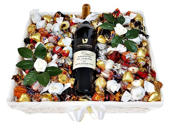 סלסילת שי יוקרתית ועשירה, המשלבת בקבוק יין משובח, ופרליני שוקולד מובחרים במגוון טעמים.