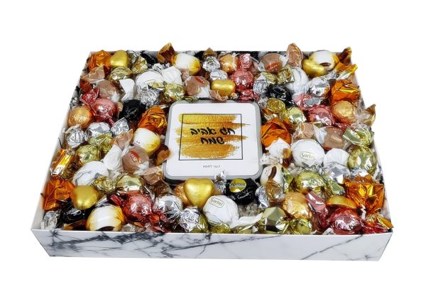 בתוכה שילבנו קופסת שי לפסח, במילוי מתוק, ומסביבה מבחר פרליני שוקולד משובחים.