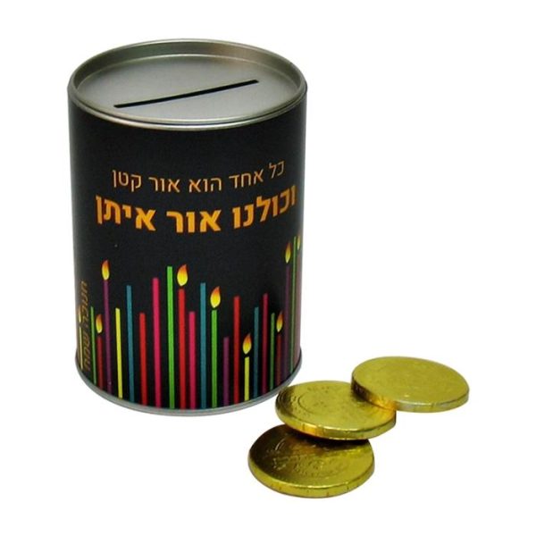 קופת חיסכון מעוצבת ברוח חג החנוכה, במילוי מתוק לפי דרישת הלקוח.