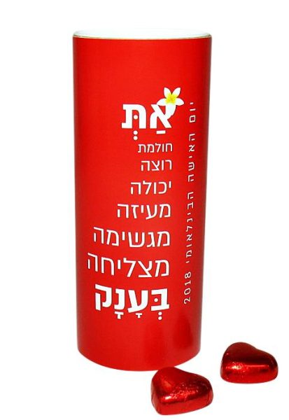 גליל שי ליום האשה, עם מסר מעצים ומחזק, במילוי מתוק של שוקולדים.