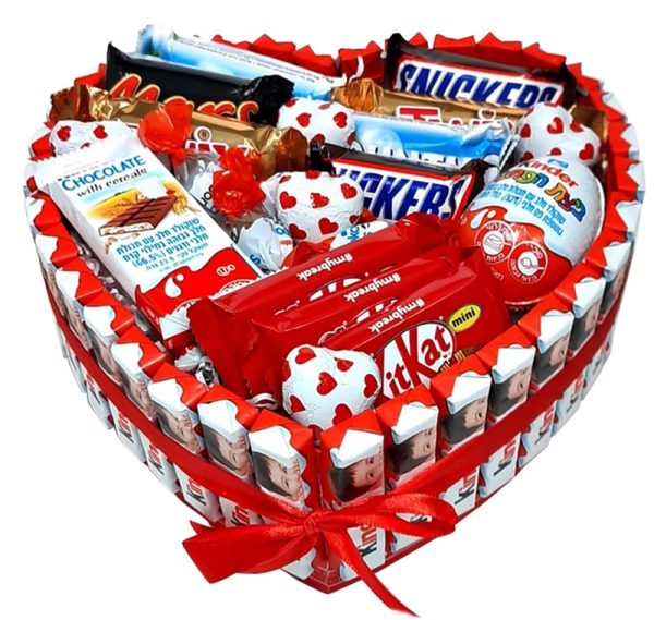 מארז שוקולדים מתוק במיוחד, מעוצב בקופסה בצורת לב.