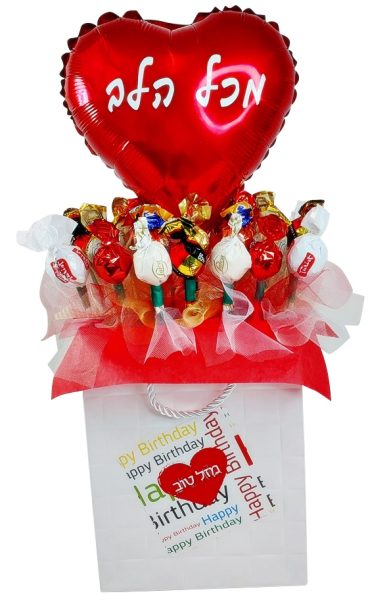 זר מתוק ליום הולדת, שזור בשקית מעוצבת,