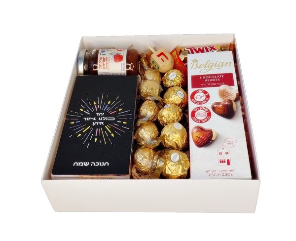 מארז מעוצב לחנוכה, המשלב את סממני החג-