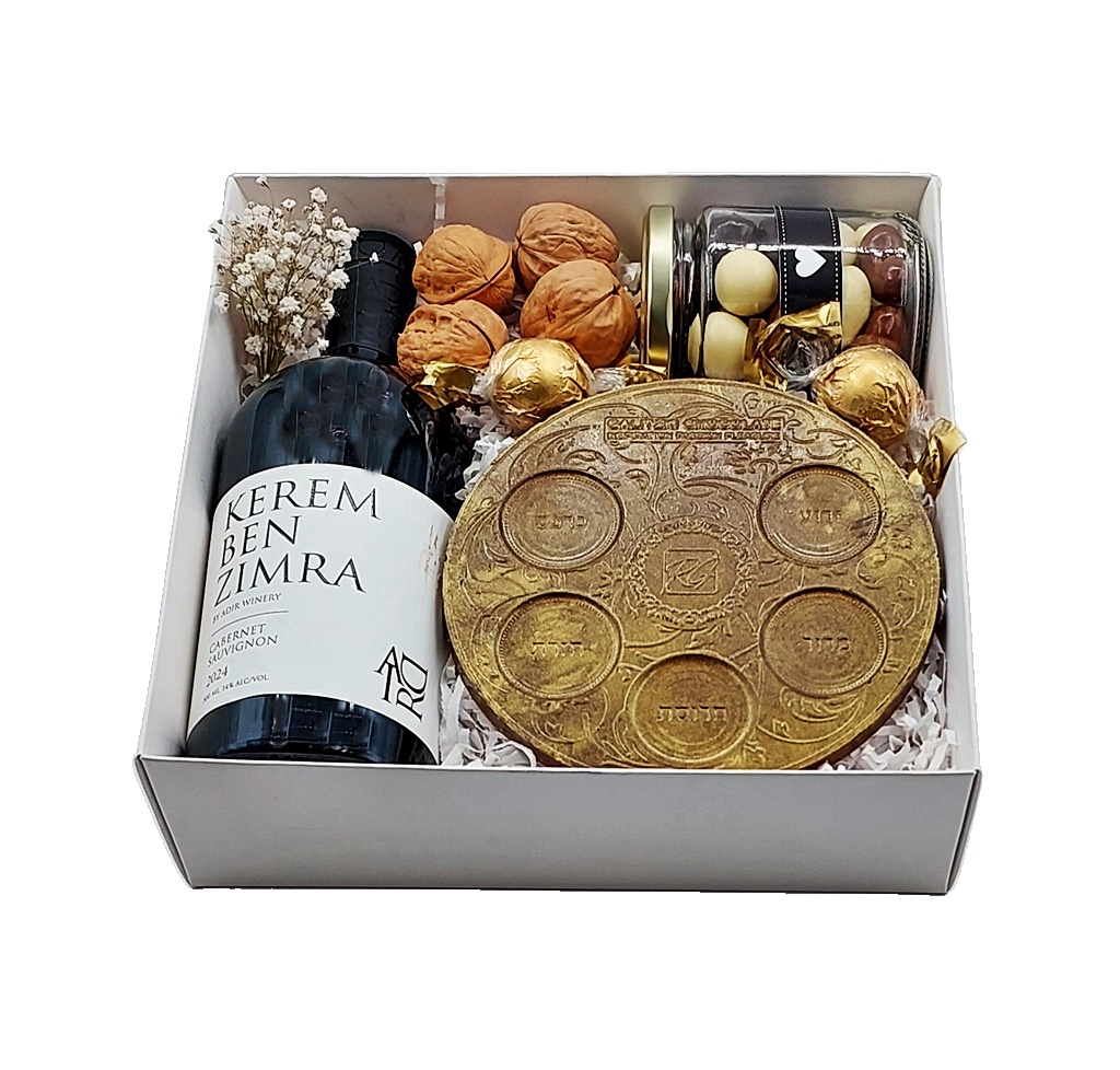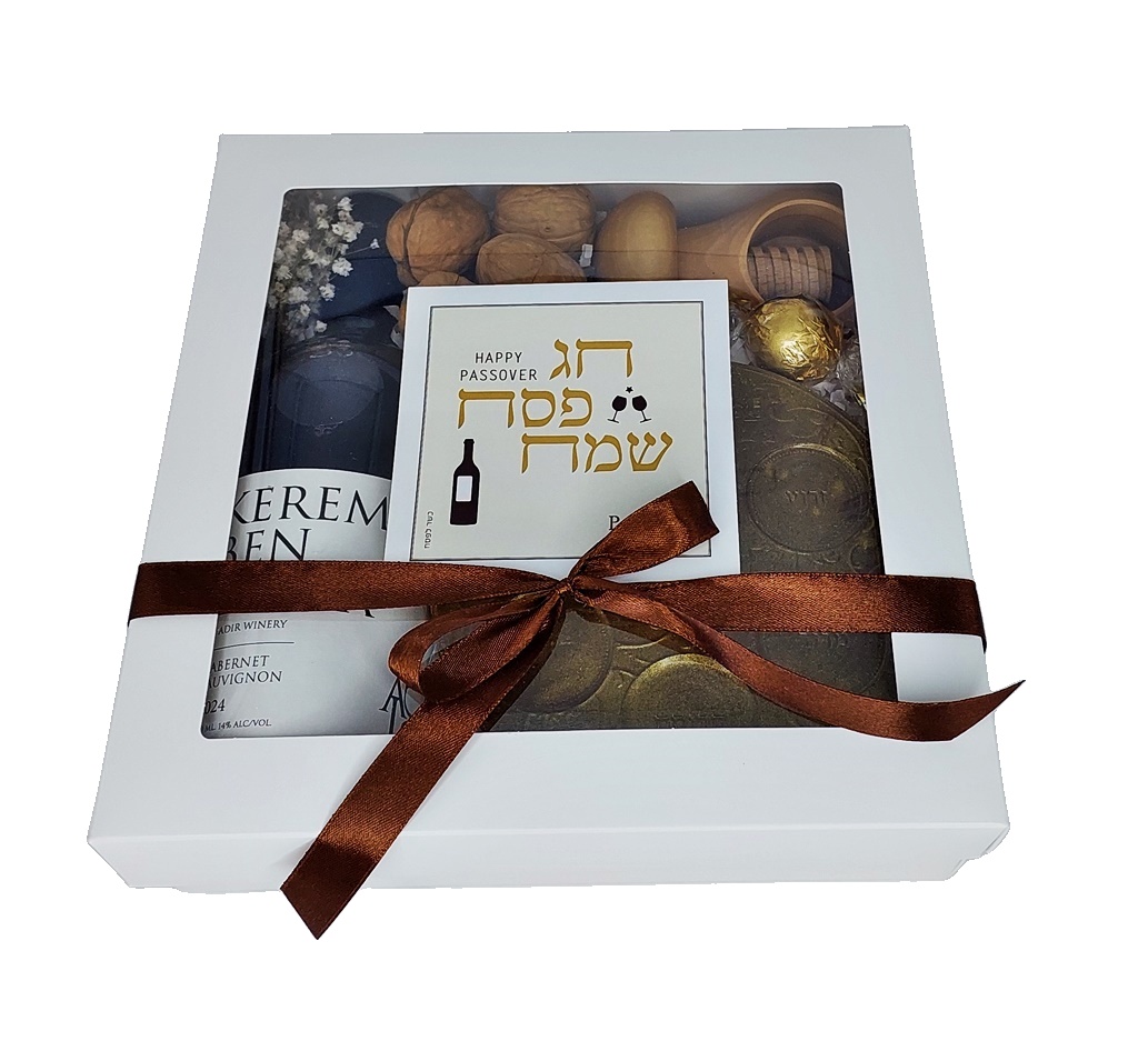אריזה: קופסת חלון מעוצבת, מדבקה עם מסר לחג, סרט חגיגי ושקית נשיאה מהודרת.