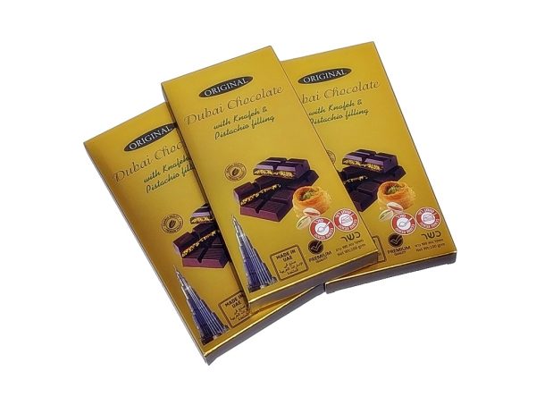 טבלת שוקולד חלב במילוי פיסטוקים קצוצים ושערות קדאיף